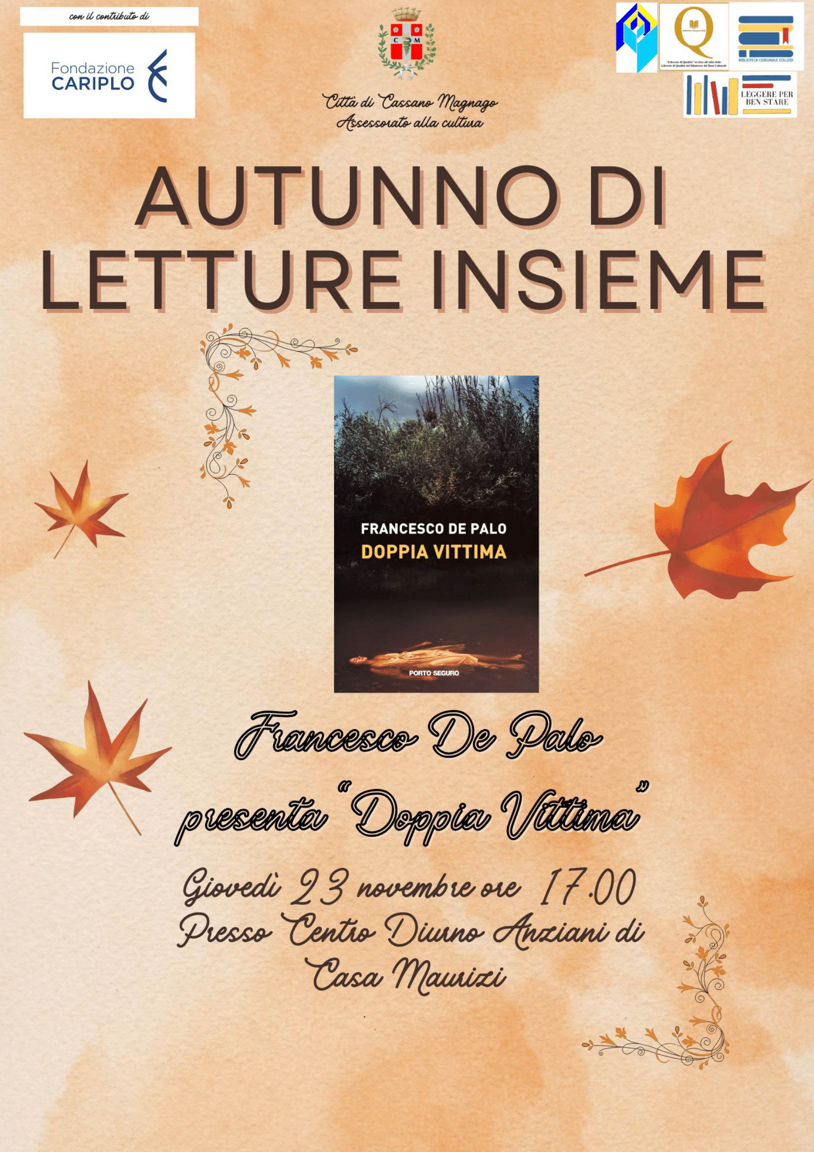 LOCANDINA continua ... INCONTRO CON L'AUTORE - PRESENTAZIONE LIBRO PRESSO CENTRO ANZIANI - venerdì 3 novembre 2023Giovedì 23 novembre vi aspettiamo alle 17.00 al centro anziani per la presentazione dell'ultimo libro di Francesco De Palo.