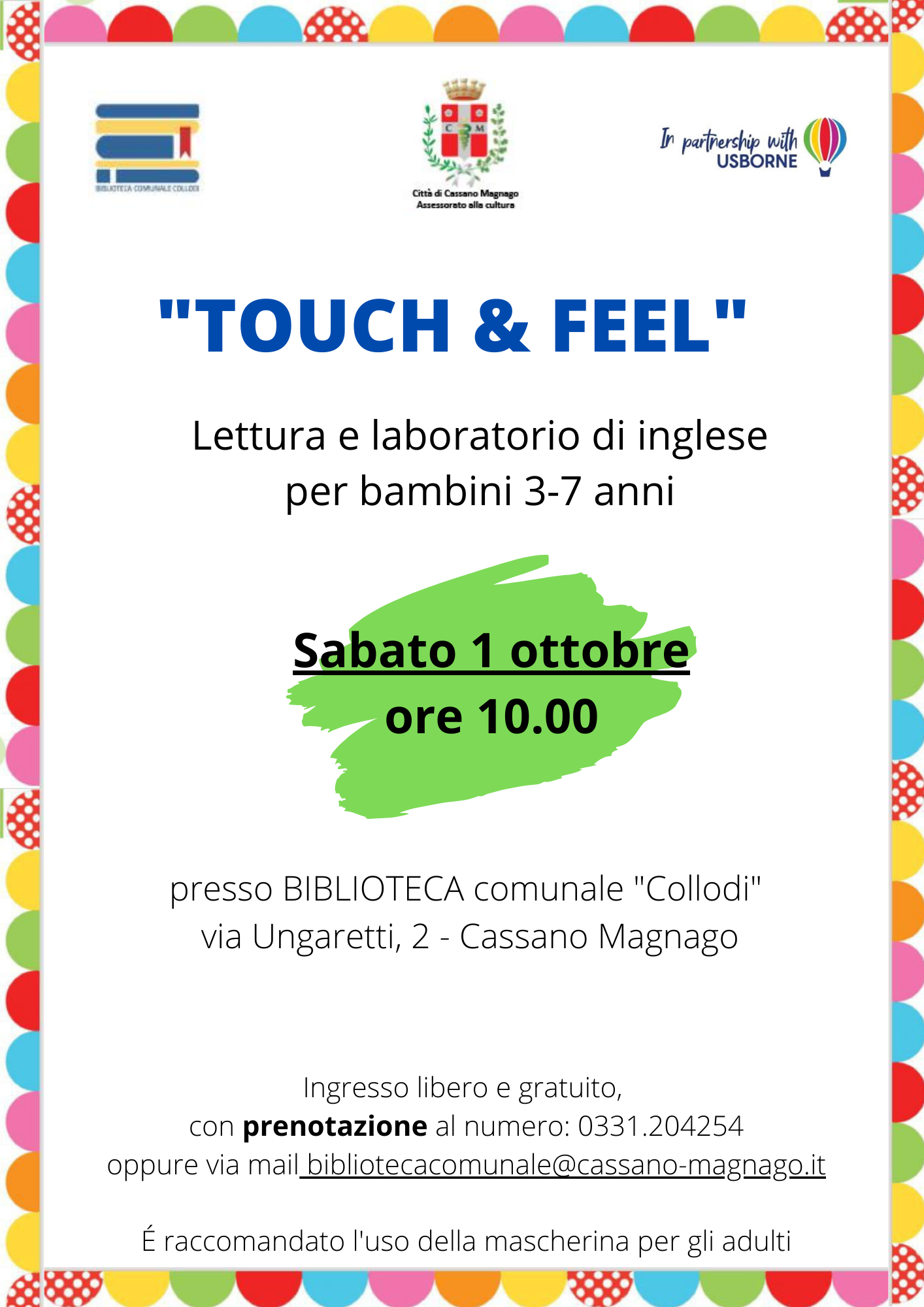 LOCANDINA continua ... LETTURA E LABORATORIO IN INGLESE - SABATO 1 OTTOBRE ORE 10.00 - martedì 27 settembre 2022Sabato 1 ottobre alle 10.00 alcune lettrici volontarie propongono letture e laboratorio in inglese per bambini da 3 a 7 anni. Prenotazioni allo 0331204254 oppure bibliotecacomunale@cassano-magnago.it. Vi aspettiamo!