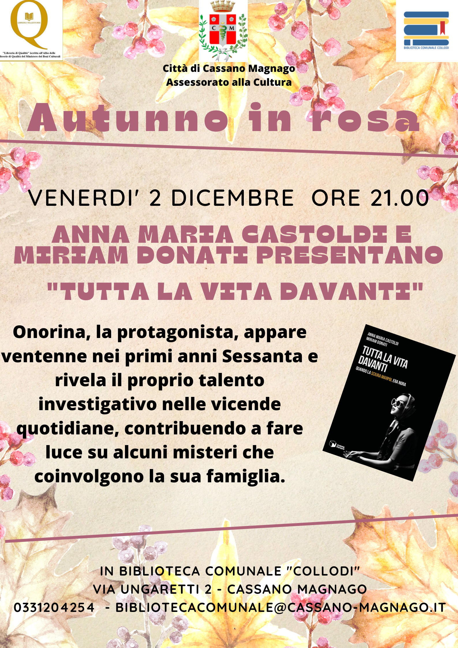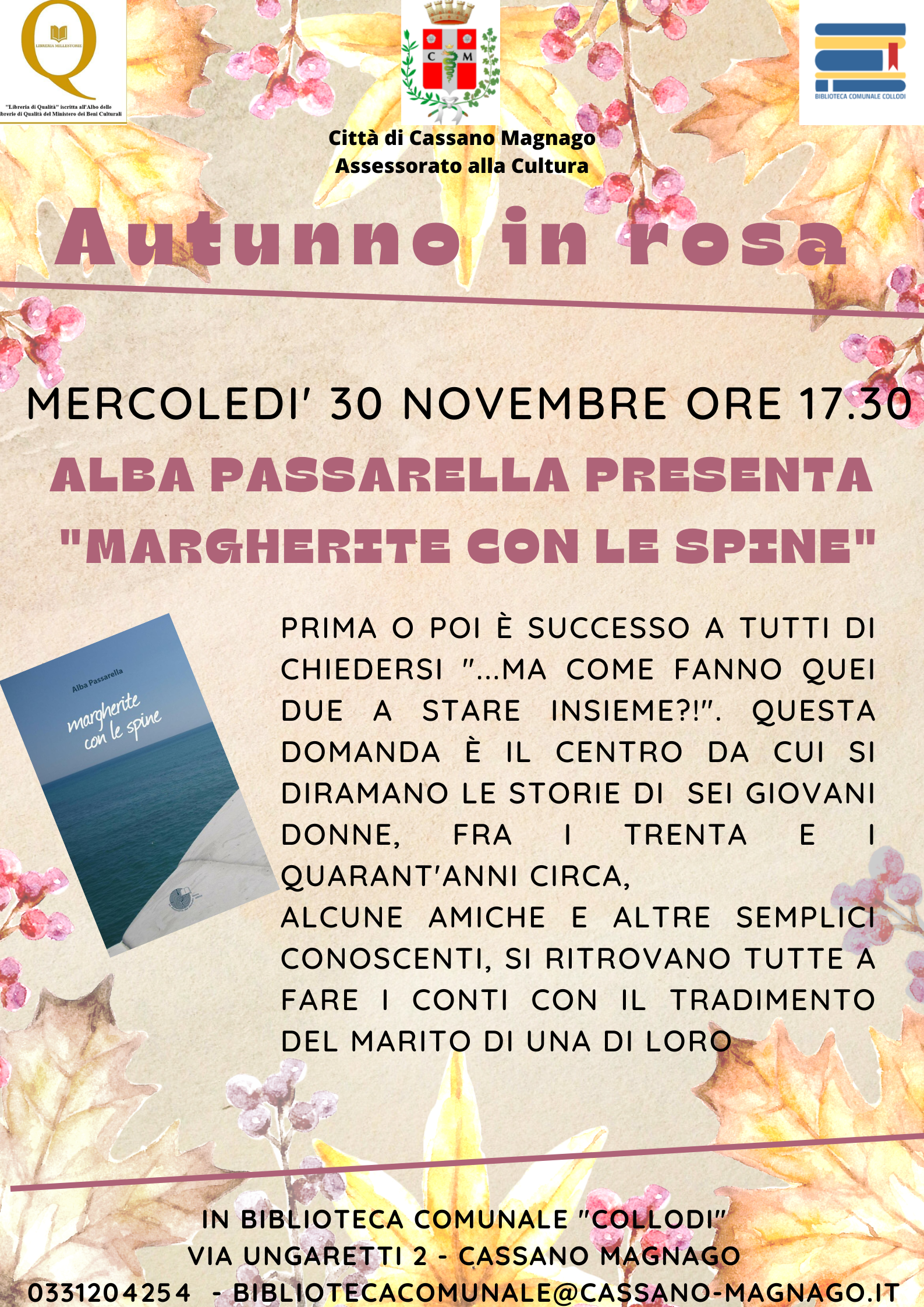 LOCANDINA continua ... AUTUNNO IN ROSA - INCONTRI CON L'AUTRICE - mercoledì 16 novembre 2022Proponiamo una rassegna autunnale di incontri con autrici che ci raccontano storie di donne.