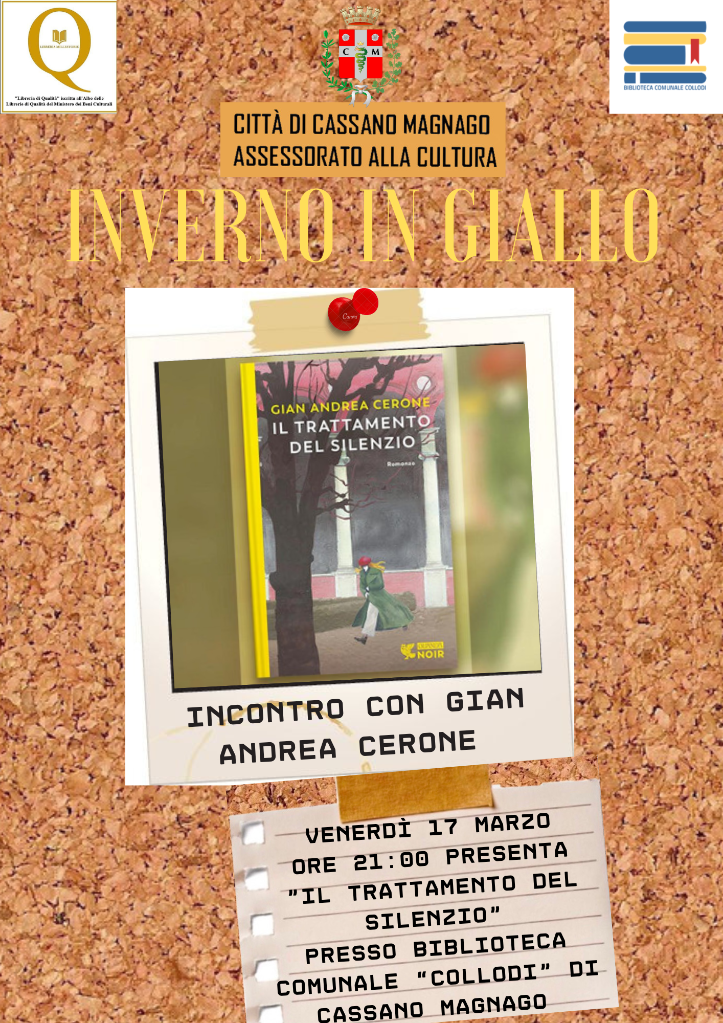 LOCANDINA continua ... INCONTRO CON L'AUTORE GIAN ANDREA CERONE - giovedì 2 marzo 2023Venerdì 17 marzo alle 21.00 vi aspettiamo per conoscere l'autore Gian Andrea Cerone e i suoi gialli ambientanti nella Milano contemporanea.