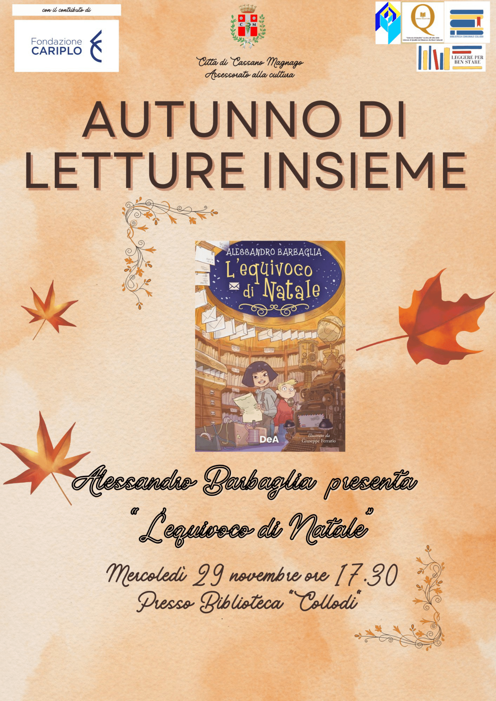 LOCANDINA continua ... INCONTRO CON L'AUTORE ALESSANDRO BARBAGLIA - venerdì 3 novembre 2023Mercoledì 29 novembre alle 17.30 Alessandro Barbaglia presenterà il suo nuovo libro "L'equivoco di Natale". Aspettiamo grandi e piccoli per un pomeriggio divertentissimo!