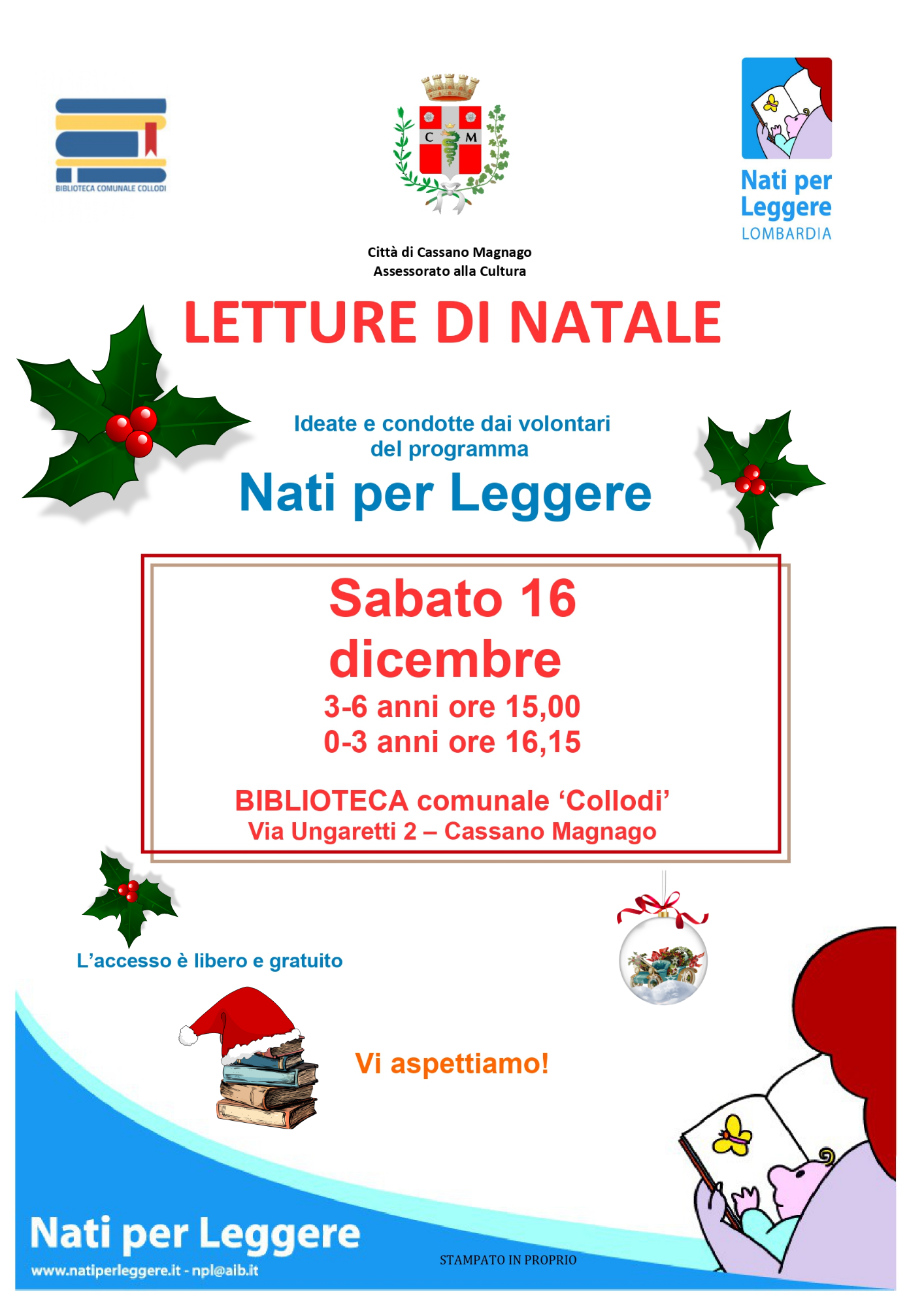 LOCANDINA continua ... LETTURE NATI PER LEGGERE 3-6 ANNI E 0-36 MESI VENERDI' 5 DICEMBRE - venerdì 28 novembre 2025Venerdì 5 dicembre ultimo incontro dell'anno con le volontarie e i volontari di Nati per Leggere Lombardia, alle 16.00 per i bambine e bambini dai 3 ai 6 anni e alle 17.15 per i piccoli da 0 a 36 mesi.
