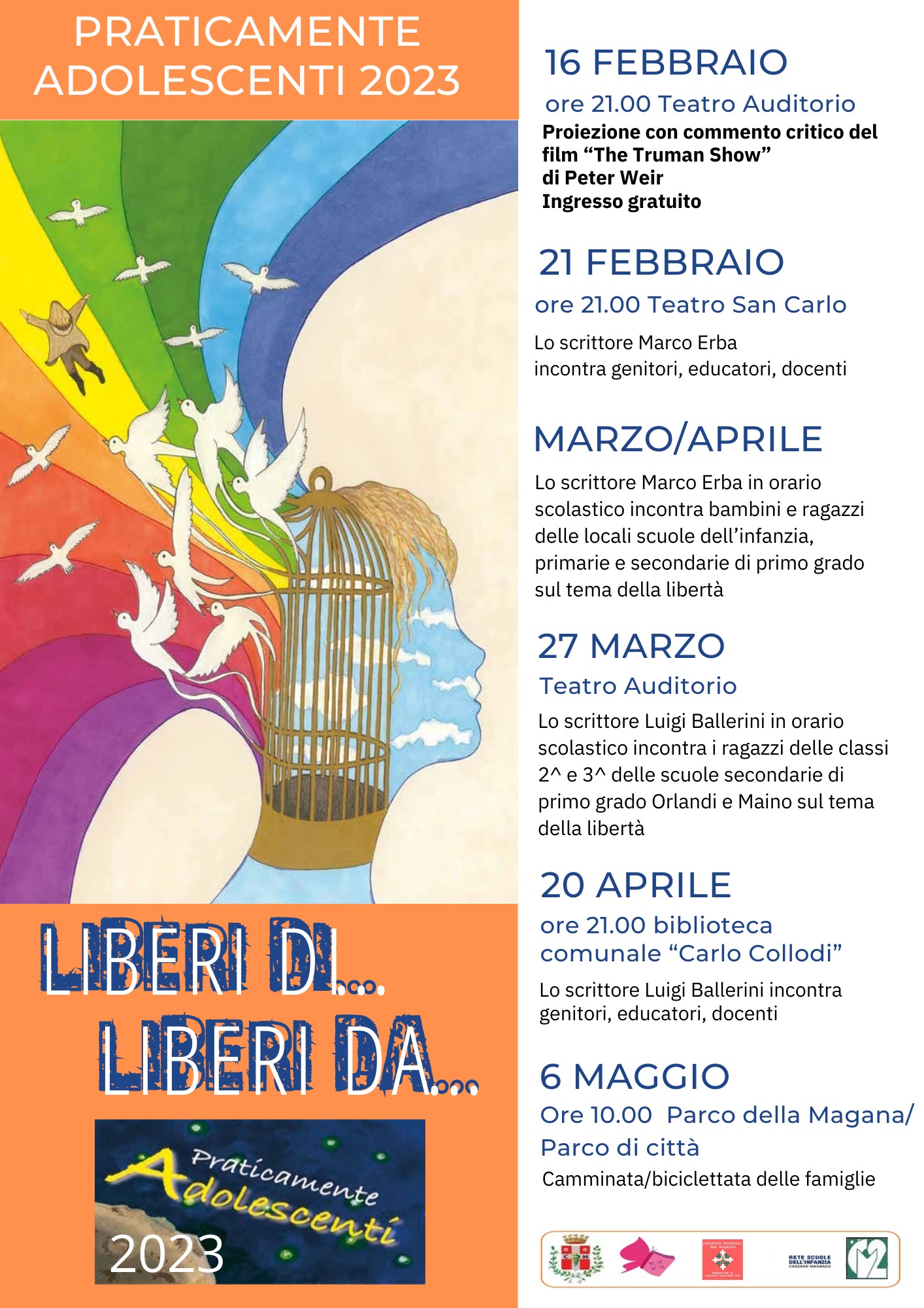 LOCANDINA continua ... PROGETTO PRATICAMENTE ADOLESCENTI 2024: "CHE BELLA FATICA CRESCERE" - martedì 12 marzo 2024Comincia come di consueto con la proiezione di un film il cammino del progetto Praticamente Adolescenti 2024; appuntamento lunedì 18 marzo alle 20.45 al Cinema Teatro Auditorio. Il progetto anche quest'anno terminerà con una camminata/biciclettata delle famiglie, sabato 11 maggio alle 10.00